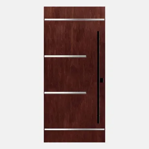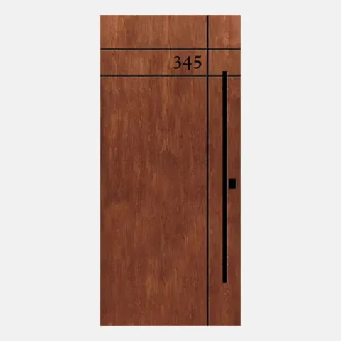 Inscribed front doors add refinement and elegance to a home’s entryway. Each design is engraved into a Signet Cherry fiberglass panel showcasing true richness of color and sophistication. Signet engraved door designs include three stainless steel inlay models, as well as an option to engrave your house number into your door (style 001-INS3-HN).