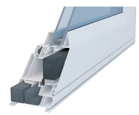 Engineered Thermal Insulation uses engineered rigid insulation bars with dead air space to maximize thermal insulation by reducing heat and cold transfer through the window frame.